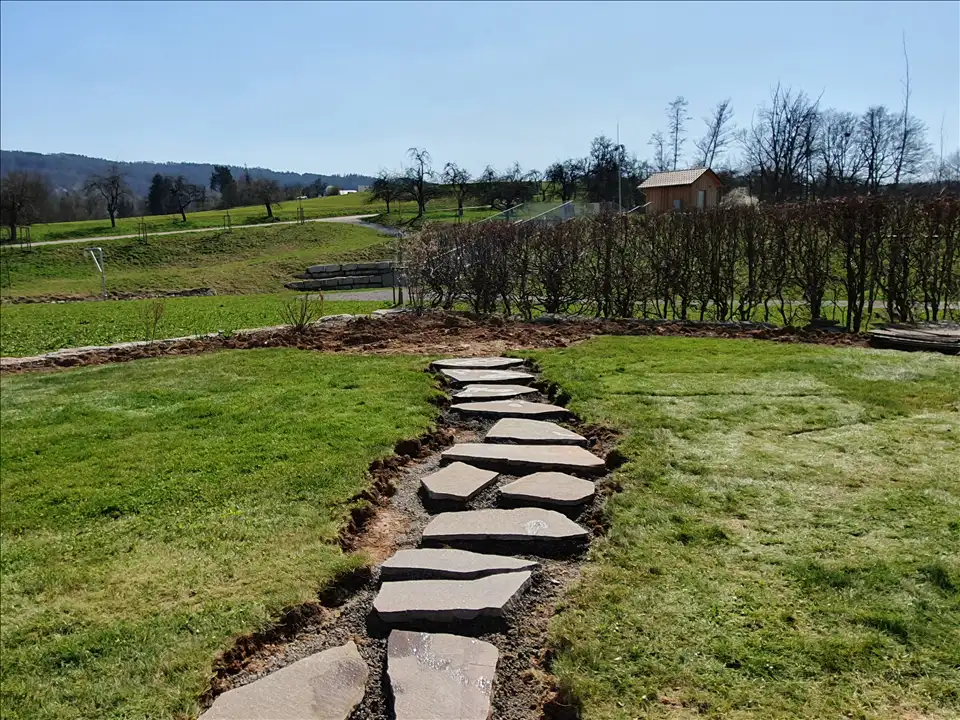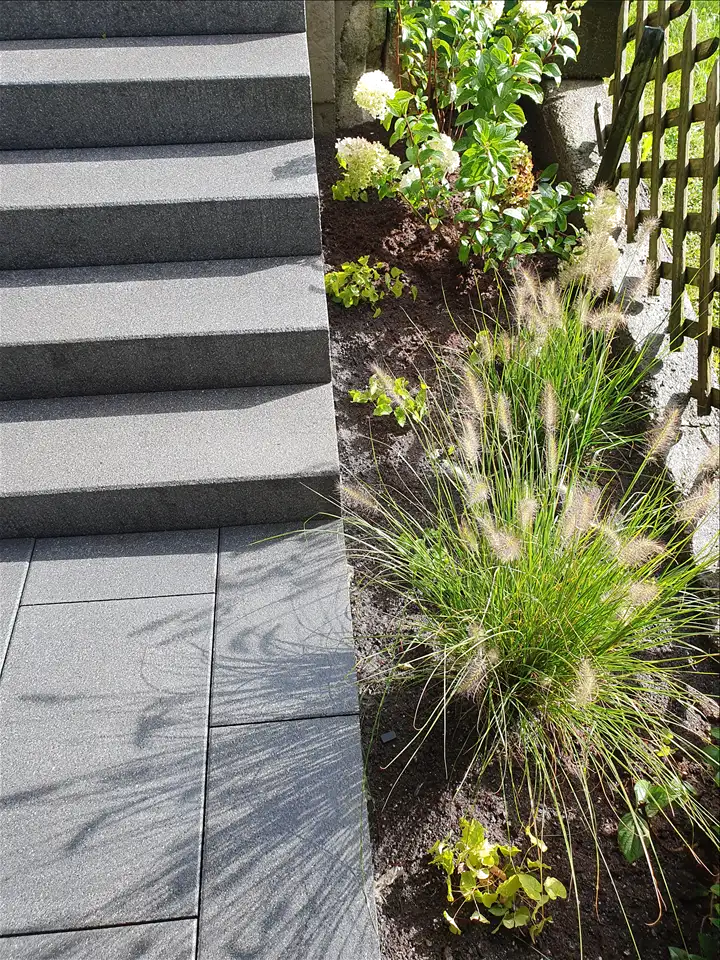 Eindrücke von Pflanzungen, Terrassen, Wegen, Mauern, Wasser im Garten.